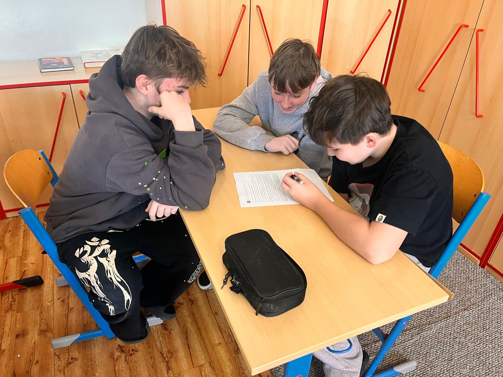 | Foto: Žáci ZŠ a MŠ Bitozeves při luštění šifer k úkolu |