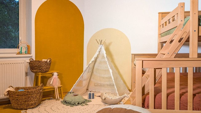 Dětský pokoj si zaslouží občas osvěžit. A nemusíte tomu obětovat ani celou výplatu! Stačí mít volný víkend a pár plechovek barev Balakryl a Primalex. Vsaďte na teplé odstíny a namalujte na stěnu barevné oblouky, se kterými můžete sladit nábytek a...