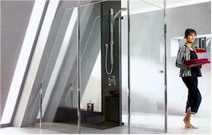 Sprchovat se sice můžete i ve vaně, ale mnohem pohodlnější a rychlejší je použití sprchového koutu. Trend je zcela jasný – velký sprchový kout (alespoň 90 x 90, lépe však 80 x 120 centimetrů i více) s mělkou vaničkou, termostatická baterie a maximální transparentnost neboli bezrámové konstrukce či dokonce pouhé prosklené zástěny bez jakýchkoliv dveří. Vzhledem k velké vaničce pak postačí čelní zástěna, do sprchy vstupujete z volného boku. Závěsy? Ty se používají jen minimálně, vždyť komu by se líbilo, aby se mu v určitém momentě přilepilo na hýždě cosi, připomínající nalepenou igelitovou tašku?!