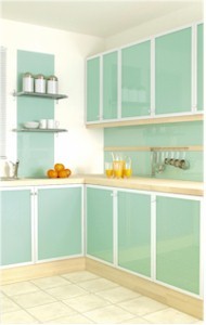 Architektonický výraz oblíbených vestavěných skříní nejvíce ovlivňuje vzhled a design dveří. Posuvné dveře nabízejí architektovi či designerovi větší ucelenou plochu k realizaci, uživateli pak komfortní manipulaci a současně významně šetří místo při otevření skříně. Sklo se ocitá na předních příčkách v oblíbenosti materiálů, především pro svou optickou lehkost. Najde uplatnění ve všech menších místnostech nebo dělících příčkách šaten, které mají částečně propouštět světlo. Velmi elegantně působí částečně průsvitné matové sklo, které lehce zobrazuje kontury uloženého šatstva a místnosti dodává hloubku. Kdo nechce skrze dveře nahlížet do útrob skříně, může volit z několika atraktivních barevných odstínů lakovaného skla Lacobel, které místnost oživí a současně díky lesklému povrchu odrážejícímu světlo místnost opticky rozsvítí. Speciální verzí skleněné výplně je zrcadlo, které najde uplatnění především v extrémně malých prostorech, například při vestavbě skříní do dlouhé a úzké chodby.