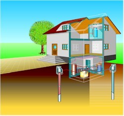 V případě odběru hlubinné energie se provádějí vrty hluboké až 150 m se zapuštěným výměníkem z plastových trubek. Vrty se umisťují v blízkosti stavby, nejméně 10 m od sebe. Lze je umístit i pod stavbou, zvláště jde-li o novostavbu. Na 1 kW topného výkonu tepelného čerpadla je potřeba 12 až 18 m hloubky vrtu, podle geologických podmínek. Vrty jsou finančně i realizačně náročnější než povrchové zemní kolektory, složité podloží s nesoudržným materiálem může navíc instalaci řádně prodražit.