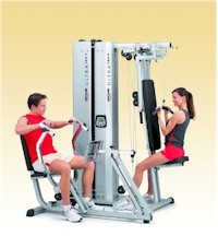O multifunkčních cvičebních zařízeních již byla řeč a můžete se na ně podívat na snímcích. Současný trend směřuje ke kombinaci kardiotrenažeru s posilovacím zařízením. Novinkou je pulsní řídicí program, který podle tepové frekvence sám nastavuje zátěž. Především muži ocení tréninkový počítač u posilovacích věží, který ukazuje momentální zátěž, počet zdvihů a sérií, sčítá celkovou zátěž, hlídá tempo při cvičení. Milovníci veslovacích trenažerů uvítají hladší a výrazně tišší pojezd sedátka. Díky tomu je hluk provázející cvičení výrazně nižší.“