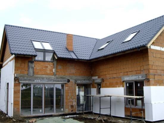 „Na stavbu nám přivezli tabule již naměřené a to s přesností na centimetry. Nejen že jsme tedy nemuseli platit za žádný přebytečný materiál, ale je to i šetrné k životnímu prostředí,“ popisuje majitelka. „S lehkými a přesně naměřenými pásy pak měli klempíři minimum práce a netrvalo dlouho a náš dům byl pod střechou.“