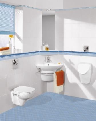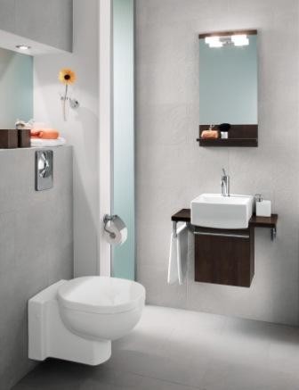 Umývátko s překvapivě velkou odkládací plochou doslova vyplní každičký roh a růžek. Umyvadlo a toaletu a je možné pohodlně umístit i do koupelny s rozměrem jednoho metru čtverečního. Umyvadlo nabízí vhodnou odkládací plochu, kterou doplňuje zabudovaná polička v krytu sifonu. Promyšlený kompaktní nábytkový program se skládá s nástěnné poličky, rohové skřínky, krytu umyvadlového odpadu s integrovanou poličkou a zrcadla. Nábytek z ušlechtilé oceli nebo antracitově zbarveného kovu působí velmi moderním a vzdušným dojmem. (Villeroy&Boch)