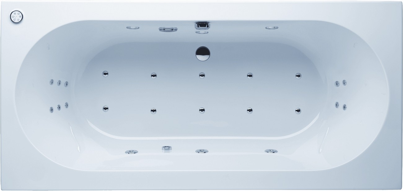 Systém vodních a vzduchových trysek pro masáž celého těla s elektronickým nebo manuálním ovládáním (na obrázku vana Cassandra s manuálním ovládáním).