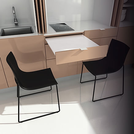 S originálním řešením přichází specialista na vestavěné skříně - firma Indeco.cz, spolu s designérem arch. Romanem Vrtiškou. Jejich nové pojetí kuchyňského koutu „na míru“ se představí 22. září na veletrhu ForArch, a to ve třech produktových řadách Economy, Standard a Top Class, které se - jak už jejich názvy napovídají - budou lišit cenově i vybavením.