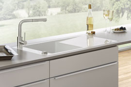 Mimo náš zorný úhel se na několik desetiletí dostaly keramické dřezy. Ideální materiál, který se již dávno osvědčil jako zdravotně nezávadný a hygienický, mimořádně odolný proti nárazu a poškrábání, naprosto necitlivý vůči horkým pánvím a hrncům a odolávající běžně používaným dřívějším i současným čistícím prostředkům. Dnešní keramické dřezy jsou mnohem sofistikovanější a krásné ve své moderní i klasické formě. Díky speciálnímu hydrofobnímu povrchu CeramicPlus se na nich nedrží voda, vodní kámen ani nečistoty, ale jednoduše ihned odtékají. Volit můžete ze super lesklé glazury nebo moderní matné úpravy, výběr z šestnácti barev, dvou dekorů, desítek tvarů a velikostí pro každý typ kuchyně a vysoce individuální požadavky. Kulaté, hranaté, rohové, masivní i super ploché, které splynou s pracovní plochou. Aby byla harmonie dokonalá, Villeroy & Boch nabízí ke všem dřezům odpovídající kvalitní baterie v nerezu, chrómu nebo i stejné barvě, jako dřezy.