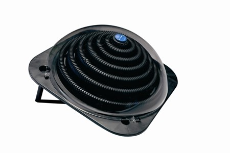 Ideální volbou pro ohřev vody v menších bazénech je kruhový solární ohřev Pyramida. Voda čerpaná pomocí filtrace proteče spirálou, ve které se díky slunečnímu záření prohřeje. Aby bylo ohřívání vody co nejefektivnější a nejúčinnější, jsou vlákna kruhového solárního ohřevu umístěna těsně u sebe, takže tepelná energie se velmi dobře šíří. Ochranná kopule, která konstrukci kryje, pak zabraňuje úniku tepla a sluneční paprsky ještě víc koncentruje.