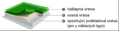 Provzdušněná mechanická pěna ze skelného vlákna má nejlepší tepelně izolační vlastnosti a zajistí příjemný došlap. Je pevná, má paměťový efekt a zajišťuje rozměrovou stálost.