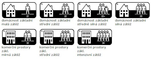 Určuje do jakých prostor je daný materiál vhodný. Pro bytové účely je hodnocení označováno řadou 21 – 22 – 23 (lehká – střední – vysoká zátěž), pro komerční prostory řadou 31 – 32 – 33 – 34.