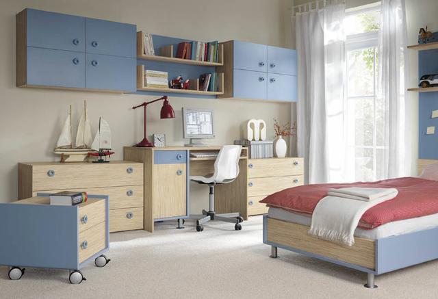 přibývajícím množstvím hraček je vhodné pořídit dřevěné regály s místem pro pevné nebo zasouvací kontejnery. Později nastává potřeba, kam umístit knihy, učebnice, počítač, zkrátka je zapotřebí funkční studentský nábytek. Možností jsou různé police a poličky, psací stoly spojené s regály a množstvím úložných prostor. Pokud se dítě začne věnovat doma i pohybovým a sportovním aktivitám, je nutné jim také vyčlenit prostor. Je možné pokoj vybavit lezeckou stěnou, konstrukcí pro šplhání, nebo houpačkou. Při troše dobré vůle a dobrém rozvržení se vejdou i do malého pokoje. Další úložné prostory se dají najít v podobě nástavce na skříně, úložného místa pod postelí, různých kapsářů, nebo závěsných košů. Množství úložných ploch usnadní úklid a zpřehlední uspořádání věcí. Dítě se od dospělých a sourozenců učí pořádku a v dětském pokoji si vytváří modely chování k užívání prostoru pro svůj další život.