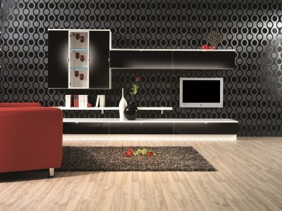 Tento nábytek se vyznačuje plochými, velmi nízkými a úzkými skříňkami a nejrůznějšími závěsnými systémy (pro TV). Sestavy již nemají tolik elementů, jsou modernější. Praktičnost (např. úložný prostor) není prioritou. Vévodí zde pestré barvy nebo na rozdíl barvy chladné – vše často ve spojení s vysokým leskem, který je současným trendem a dřevem. Lesklého nábytku se dosahuje buď speciální fólií s leskem, nebo dražší variantou – nábytek se lakuje do vysokého lesku.
