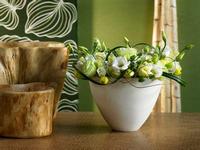 Dále postupujte stejně s Hyperikem a postupně vkládejte Eustomy. Seřezávejte květiny v různých délkách, aranžmá bude živější a zajímavější, než kdyby tvořilo kompaktní kruh.