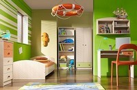 Otázka: Dobrý den, ráda bych se poradila o dětském pokojíčku pro dva kluky (5let a mimi), který bude zatím sloužit jako herna. Je zhruba 3 x 5m velký s velkým oknem na širší zdi. Na kratší stěně je po celé délce vestavěná skříň bílé barvy, i ostatní nábytek bude zřejmě bílý (úložné krabicové systémy Ikea). Podmínkou je tmavě modrý koberec a teď se nemůžeme rozhodnout, jak vymalovat, aby to nebylo moc studené, působilo to vesele a příjemně, případně to pokoj opticky zvětšilo a současně to ladilo s tím kobercem. A ještě jedna otázka - pro pětileté dítě ještě malý stoleček a židlička na malování nebo již klasický psací stůl - potom ale nevím, co se židličkou, protože z klasické židle se dítě nedostane na zem a nemá oporu nohou.