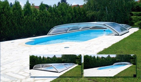 Moderní zastřešení jsou teleskopická. Jednotlivé díly do sebe přesně zapadají a v případě hezkého počasí je jednoduše odsunete mimo bazén. Dříve tyto systémy vyžadovaly kovové kolejnice, ve kterých se jednotlivé díly teleskopického zastřešení pohybovaly. Dnes je možné pořídit zastřešení i bez nevzhledných kovových kolejnic, které často představují riziko poranění, zvláště pokud se v okolí bazénu pohybujete bosí. „U bezkolejnicového typu zastřešení odpadá navíc i nutnost častého a nesnadného čištění drážek, ve kterých se díly pohybují,“ zmiňuje další výhodu tohoto zastřešení Rudolf Pejša ze společnosti Desjoyaux.