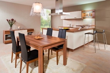 Aktuální trendy, tedy jednoduché a čisté linie, se odrážejí samozřejmě i v jídelnách a jídelních koutech. Velmi vyhledávanými kombinacemi je bílá či krémová barva ve spojení s tmavým ořechem. Nábytek je většinou preferován ve vysokém lesku. Pracovní desky stolů jsou nyní daleko silnější. Stoly tedy působí bytelněji a navozují dojem masivu (viz výše program Ombra). Novým oblíbeným designovým prvkem je jedna centrální noha stolu – což působí moderněji a odlehčeněji, ale má to i praktickou stránku – úsporu místa.
