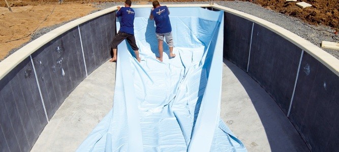 Vnitřní plochu bazénu pak vytvoří tzv. „liner“. Jde o speciální vodotěsnou fólii z PVC, která je dodávána přímo na míru daného bazénu. Je možné volit z řady odstínů, včetně oblíbené imitace mozaiky. „Liner“ se jednoduše upevní ke ztracenému bednění pod obrubní kameny. Velkou výhodou je i jednoduchá výměna „lineru“, která může po letech používání udělat ze starého bazénu nový během jednoho dne.