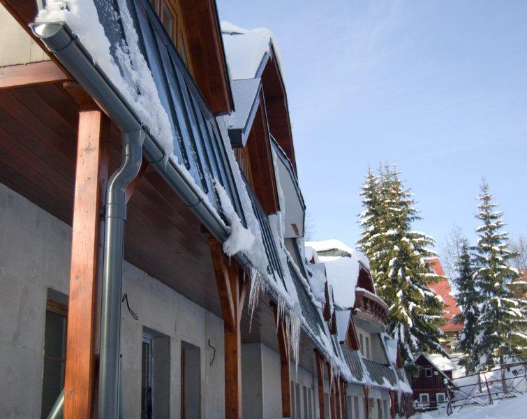 3/ Jednou z dalších možností je na zimní období demontovat okapový systém, což bylo zvykem zvláště v horských oblastech, pokud by jste se rozhodli pro tento způsob řešení, je pro Vás ideální okapový systém Lindab Rainline, neboť ho lze díky technologii stavebnicového systému snadno sestavit i demontovat.
