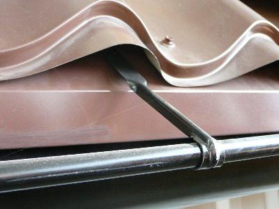 1/ Jako jednu z alternativ, lze použít systém zpevňujících úchytů žlabů STAG, které celý okap zpevní. Pro ještě lepší zpevnění podokapního žlabu doporučuji používat zpevňující úchyt žlabu STAG v kombinaci se zdvojenými háky.