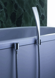 Ovládacím panelem Comfort Select lze také elektronicky řídit funkci sprchy. Hadici lze osadit libovolnou sprchovou hlavicí vhodnou pro obvyklé vanové armatury. Může být zapuštěna do okraje vany nebo nainstalována na vnějším okraji vany, což u vany volně stojící v prostoru působí jako zvláště elegantní solitér. Výsuvná sprchová hadice může navíc přidat body za techniku, protože vzhledem k provedení hadice s odkapávacím zařízením je zajištěno optimální vyprázdnění zbytkové vody.