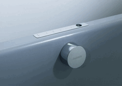 Kromě teploty lze na ovládacím panelu baterie Kaldewei Comfort Select nastavovat také napouštění a vypouštění vody. Lehkým dotekem funkčních symbolů na pochromovaném ovládacím prvku se otevírá a zavírá zátka odpadu. Vanu lze napouštět dvěma různými způsoby. Běžnou vnější vanovou armaturou nebo speciální odpadní a přepadovou soupravou Kaldewei Comfort Select s funkcí napouštění. S ní probíhá elektronicky řízené napouštění vody prostřednictvím vanového napouštění integrovaného v přepadu.