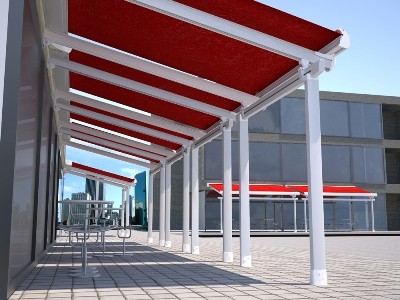 Veranda Box Je opatřena kazetou, která je estetická a zároveň chrání markýzu ve svinutém stavu před vlivy počasí. Odtok vody je zabudován ve vodících kolejnicích.Ovládání markýzy je možné pouze elektromotorem.