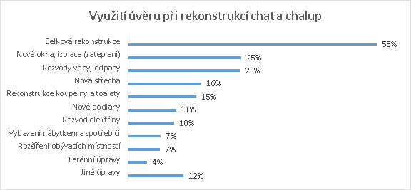 Pokud by si majitelé chat a chlup měli brát úvěr na úpravu svých druhých domovů, polovina by tak financovala celkovou rekonstrukci objektu. Zásadní opravy, jako nová okna nebo rozvody by úvěrem hradil každý pátý.