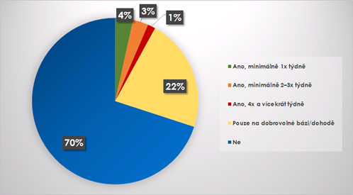 Průzkum také ukázal, že firmy příliš neuvažují o tom, že by z důvodu úspor zaváděly povinný home office. Sedm z deseti firem s ním nepočítá vůbec. A na druhé straně pouze 4,5 procenta společností ho chce povinně zavést na dva a více dní v týdnu.