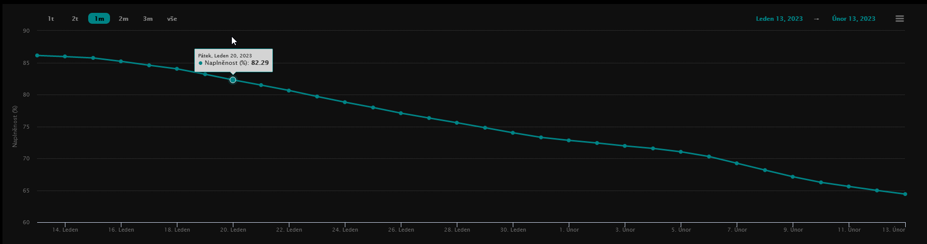 Zásoby plynu v Česku k 13. 2. 2023 - naplněnost zásobníků je aktuálně 64 %