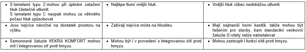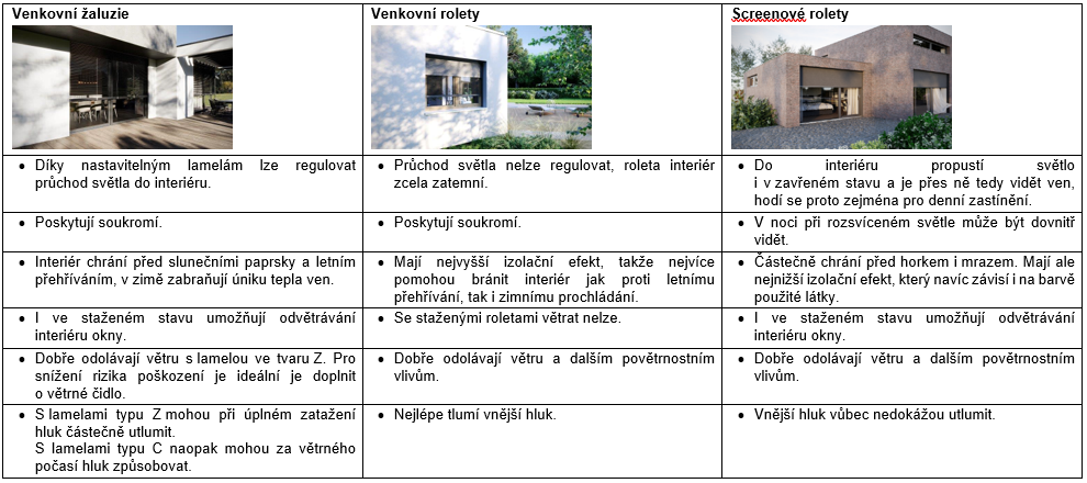 Rozdíly mezi druhy venkovního stínění