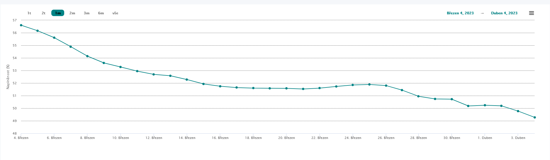 Zvýšená zimní energetická spotřeba se nadále projevuje na poklesu stavu zásob plynu. Zásobníky byly k 4.4. naplněny z 49,27%, resp. činí 18 349,8 GWh plynu.