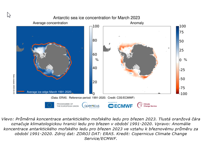 Březen 2023 – hlavní sdělení k mořskému ledu: