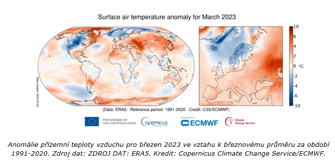 · Tento měsíc byl celosvětově druhým nejteplejším březnem v historii měření.
