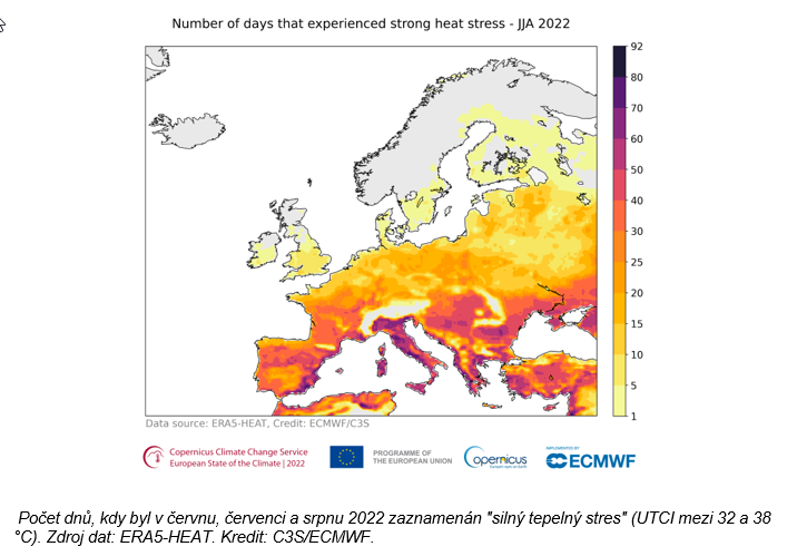 Bezprecedentní extrémní vedra a rozsáhlé sucho v roce 2022 v Evropě - Copernicus