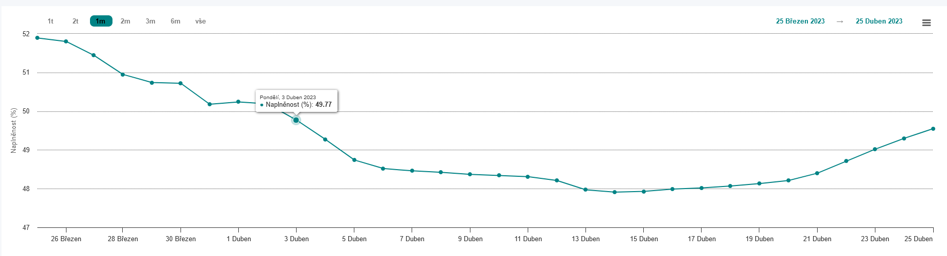 Zvýšená energetická spotřeba se nadále již tolik neprojevuje na poklesu stavu zásob plynu. Zásobníky byly k 25. 4. naplněny z 49,55 %, resp. činí 18 456,3 GWh plynu.