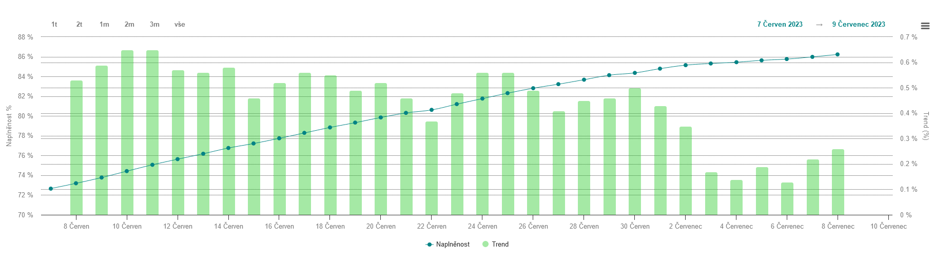 Plnění zásobníků se poslední dny pohybuje