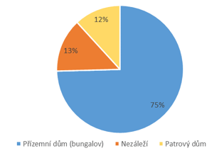 Bungalov, tedy přízemní dům, mezi zájemci absolutně dominuje. Preferuje ho téměř 75 % lidí, oproti tomu jen 12 % zájemců dává přednost domu patrovému. Ostatním na počtu podlaží nezáleží. Ze všech zájemců o bungalov 45 % uvedlo, že preferují sedlovou střechu. Valbovou střechu požaduje 15 % zájemců a plochou střechu by na svém bungalovu chtělo jen 7 % zájemců.