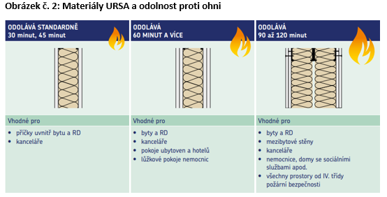 Sádrokartonové příčky se vyrábějí v různých požárních odolnostech. Je možné dosahovat požárních odolností i 120 minut a více. Ovšem záleží na typu opláštění konstrukce. V případě, že použijeme příčku jednoduše opláštěnou sádrokartonovými deskami Siniat na jednoduché ocelové konstrukci z CW a UW profilů za použití výplně URSA, dosahuje požární odolnosti 30 až 45 minut. V případě využití příčky dvojitě (trojitě) opláštěné na jednoduché ocelové konstrukci z CW a UW profilů za použití výplně URSA, dosahuje požární odolnosti 45 až 120 minut. „Minerální izolace URSA, která se používá jako zvukově pohltivá výplň příček, je přirozeně bez jakýchkoliv zpomalovačů hoření nehořlavá, má nejlepší třídu reakce na oheň A1. Tím přispívá k požární bezpečnosti příčky,“ říká architektka Vojancová.
