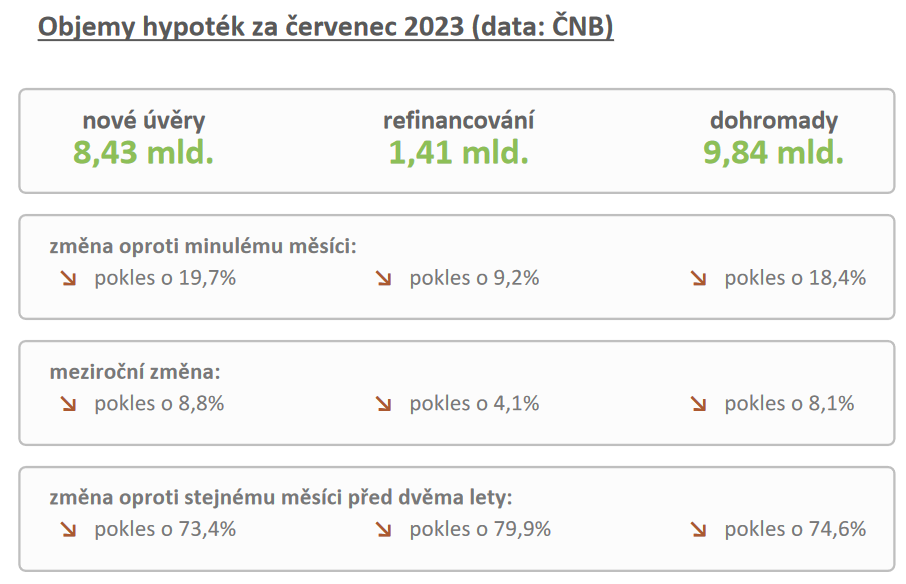 Červencové výsledky hypotečního trhu, která aktuálně zveřejnila Česká národní banka, nás ... no, řekněme si to na rovinu ... trochu zklamaly. Samozřejmě si říkáme, že červenec bývá slabší, že to je tím, že hodně pršelo, nebo že bylo příliš velké horko, nebo já nevím co, ale faktem zůstává, že červenec nebyl nic moc.
