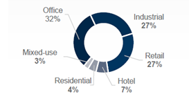 Hlavním „tahounem“ investic do komerčních nemovitostí v Česku byl maloobchodní sektor: směřovalo do něj 38 % objemu zde investovaného kapitálu. Následovaly kancelářské nemovitosti (21 %), rezidenční (13 %) a průmyslové/logistické (11 %).