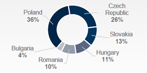 Dlouhodobě směřoval největší díl kapitálu v regionu do Polska. Bylo tomu tak také loni, nicméně zatímco dříve šlo o polovinu celkového objemu, loni to byla zhruba jeho třetina. Následovalo Česko s asi čtvrtinovým podílem. I u nás však objem investic klesl – meziročně o 26 % na 1,3 miliardy eur.