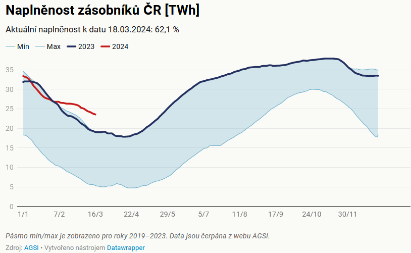 Zásobníky byly k 17.3. naplněny z 61,8 %, resp. činí 23440