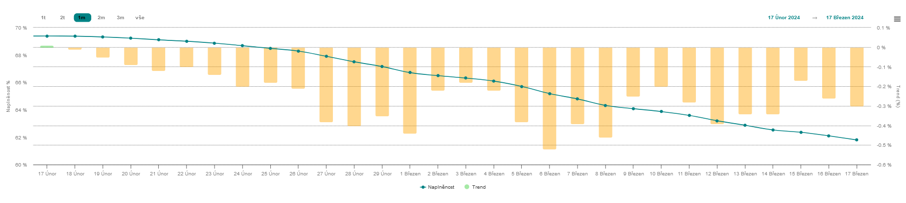 GWh. Jejich naplněnost se nyní pohybuje na zhruba 62,43 % k datu 17.3.2024.