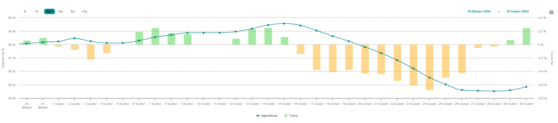 Jejich naplněnost se nyní pohybuje na zhruba 54,43 % k datu 30.4.2024.