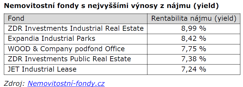 U většiny nemovitostních fondů v ČR došlo vlivem inflace v posledních třech letech k výraznému růstu nájemného. To se projevuje i na rentabilitě nájmů. U řady nemovitostních fondů v ČR, které reportují data o nájmech, se průměrný yield již dostal přes 7 % p.a. Nejvyšší yieldy vykazují fondy zaměřené na průmyslové nemovitosti, kousek za nimi jsou obchody a kanceláře. Nižší rentabilitu nájmu vykazuje logistika a fondy zaměřené na rezidenční bydlení.