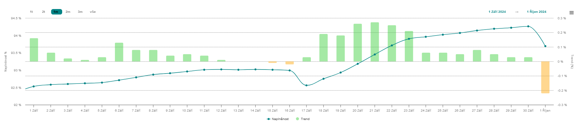 Jejich naplněnost se nyní pohybuje na zhruba 93,37 % k datu 1.10.2024.
