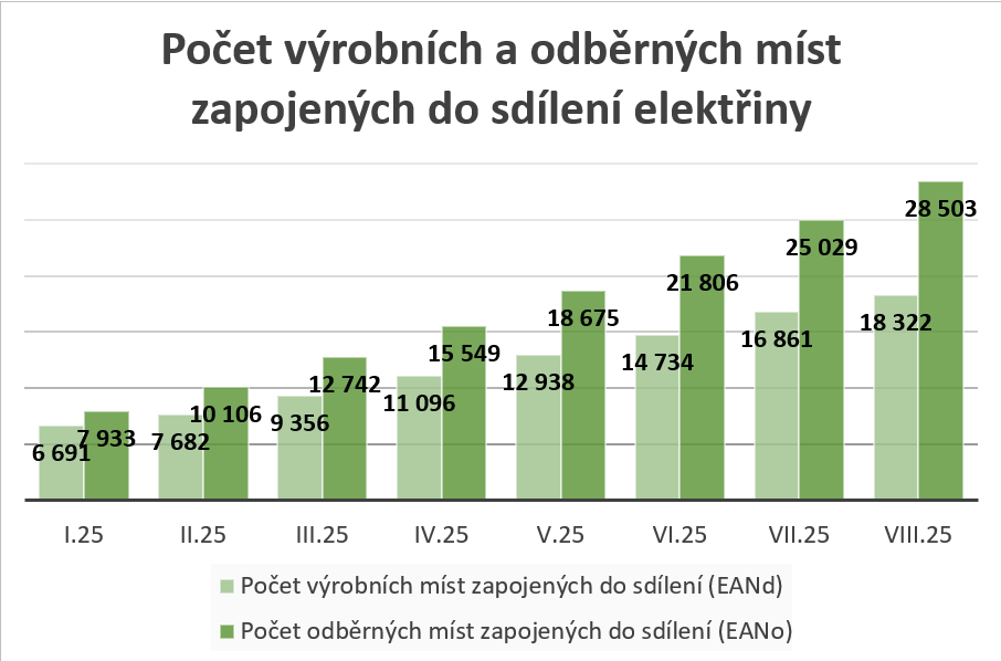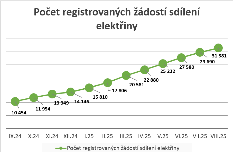 Počet zájemců o sdílení elektřiny v ČR překonal hranici 30 tisíc a celkový objem dosáhl více než 43 GWh. To by pro představu pokrylo spotřebu veřejného osvětlení v Brně po dobu tří let. Takové jsou statistiky Elektroenergetického datového centra (EDC) ke konci srpna 2025. Druhý prázdninový měsíc přispěl k celkovému množství sdílené elektřiny rekordními 9 540 MWh. Objemy přijaté sdílené elektřiny dosahují podle EDC u některých příjemců až stovek megawatthodin měsíčně. Ti tak mohou v závislosti na domluvené ceně významně snížit své náklady na elektřinu.