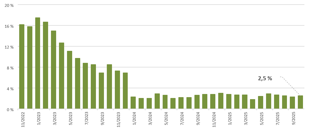 Míra inflace (změna indexu spotřebitelských cen ke stejnému měsíci předchozího roku