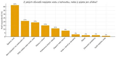 Přestože je kohoutková voda ve většině regionů zdravotně nezávadná a splňuje veškeré normy, mnoho lidí ji stále odmítá pít. Studie ukazuje, že technická kvalita vody není hlavním faktorem, podle kterého se spotřebitelé rozhodují. Největší roli hraje to, jak voda chutná, jak voní a jaký zanechává celkový dojem. Ze studie vyplývá, že až 42 % lidí nepije vodu z kohoutku právě proto, že jim nechutná – chuť se ukázala jako nejvýznamnější bariéra, která má větší váhu než jakékoli zdravotní obavy.