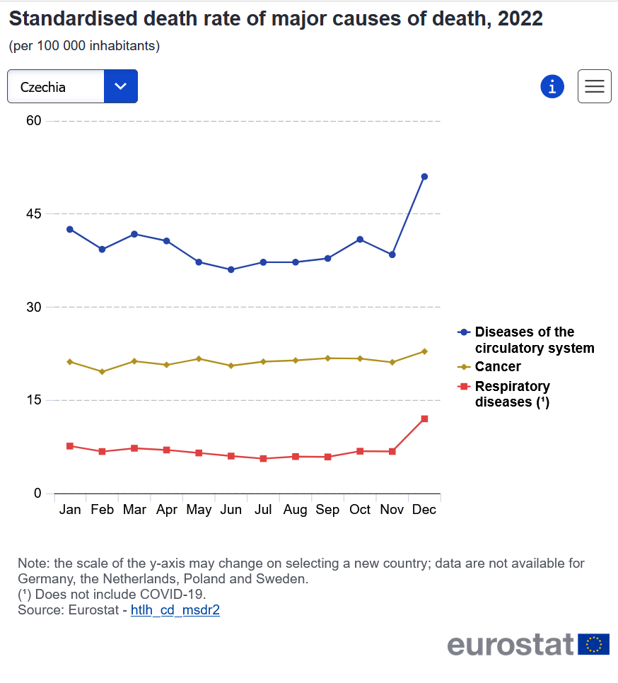 Prozkoumejte dále příčiny úmrtí pro jednovlivé státy, zde jen pro srovnání Česká republika a Belgie: